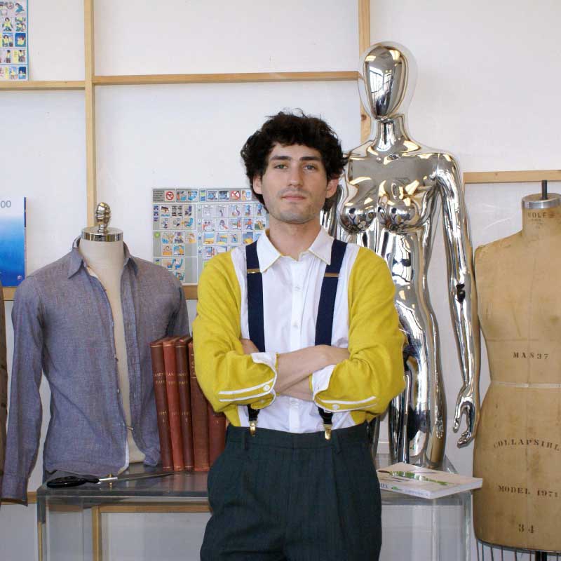 Victor Pearlman is a New York–based menswear designer, pattern maker, and graduate of the Fashion Institute of Technology’s Menswear program. He transforms reclaimed and unconventional materials—ranging from salvaged upholstery to aerospace textiles—into one-of-a-kind garments whose vast histories reframe our perception of the everyday.